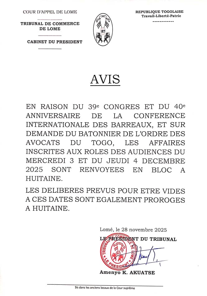 AVIS SUR LES AUDIENCES DU 03 ET DU 04 DECEMBRE 2025